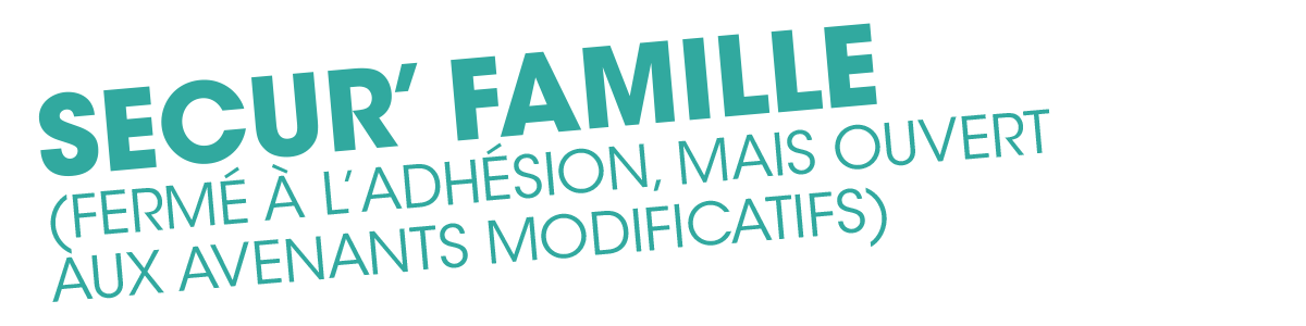SECUR’ Famille est fermé aux adhésions à partir du 21 mars 2020. Mais, tout comme Garanties Famille, il continue à vivre au rythme des besoins des assurés et reste ouvert aux modifications du capital garanti et de la clause bénéficiaire. Restez force de proposition !