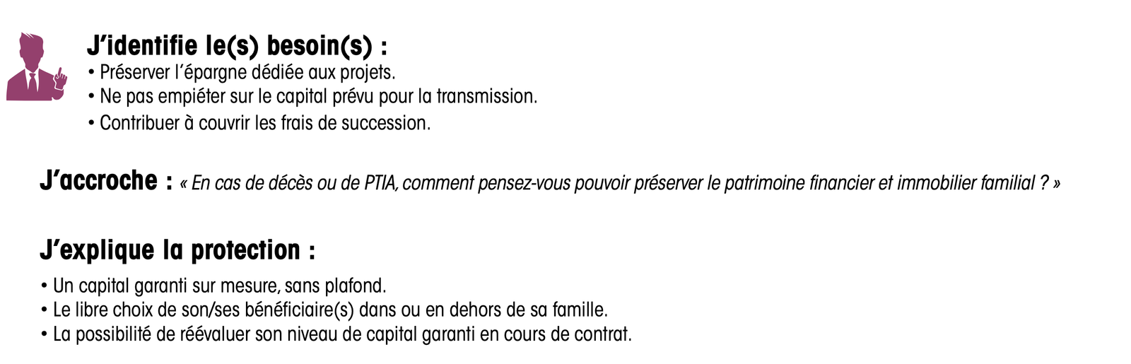 Ces clients sont pour beaucoup engagés dans une réflexion patrimoniale, avec des enjeux fiscaux. SECUR’ Famille 2 est un « outil » complémentaire pour optimiser leur démarche, en permettant de ne pas empiéter sur l’épargne constituée pour leur transmission. Le capital garanti peut ainsi être calculé de façon à couvrir les besoins immédiats des proches et les frais de succession en cas de décès. SECUR’ Famille 2 est une bonne solution pour à la fois protéger son patrimoine et l’avenir de sa famille.