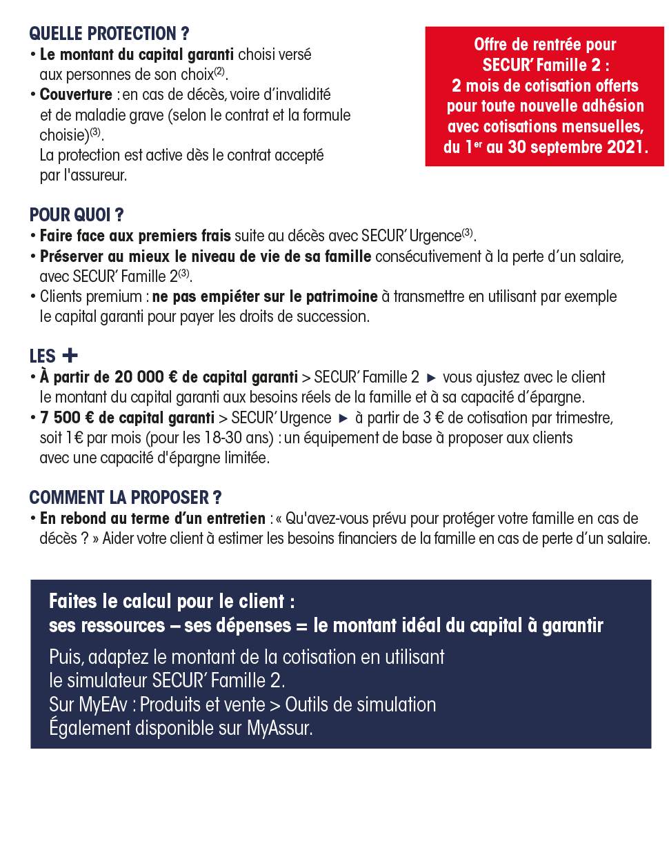 Comment préserver son niveau de vie, sa capacité d’épargne, ses revenus à la retraite, son patrimoine ? Avoir de quoi être financièrement à l'abri, notamment face aux aléas, était une préoccupation déjà bien affirmée chez les épargnants ; le contexte récent l’a renforcée, générant un besoin accru. Vous avez tout entre les mains pour accompagner et rassurer vos clients : car, qu’il s’agisse d’épargne de précaution, de prévoyance ou de retraite, pour chacun la solution existe... et même plusieurs !