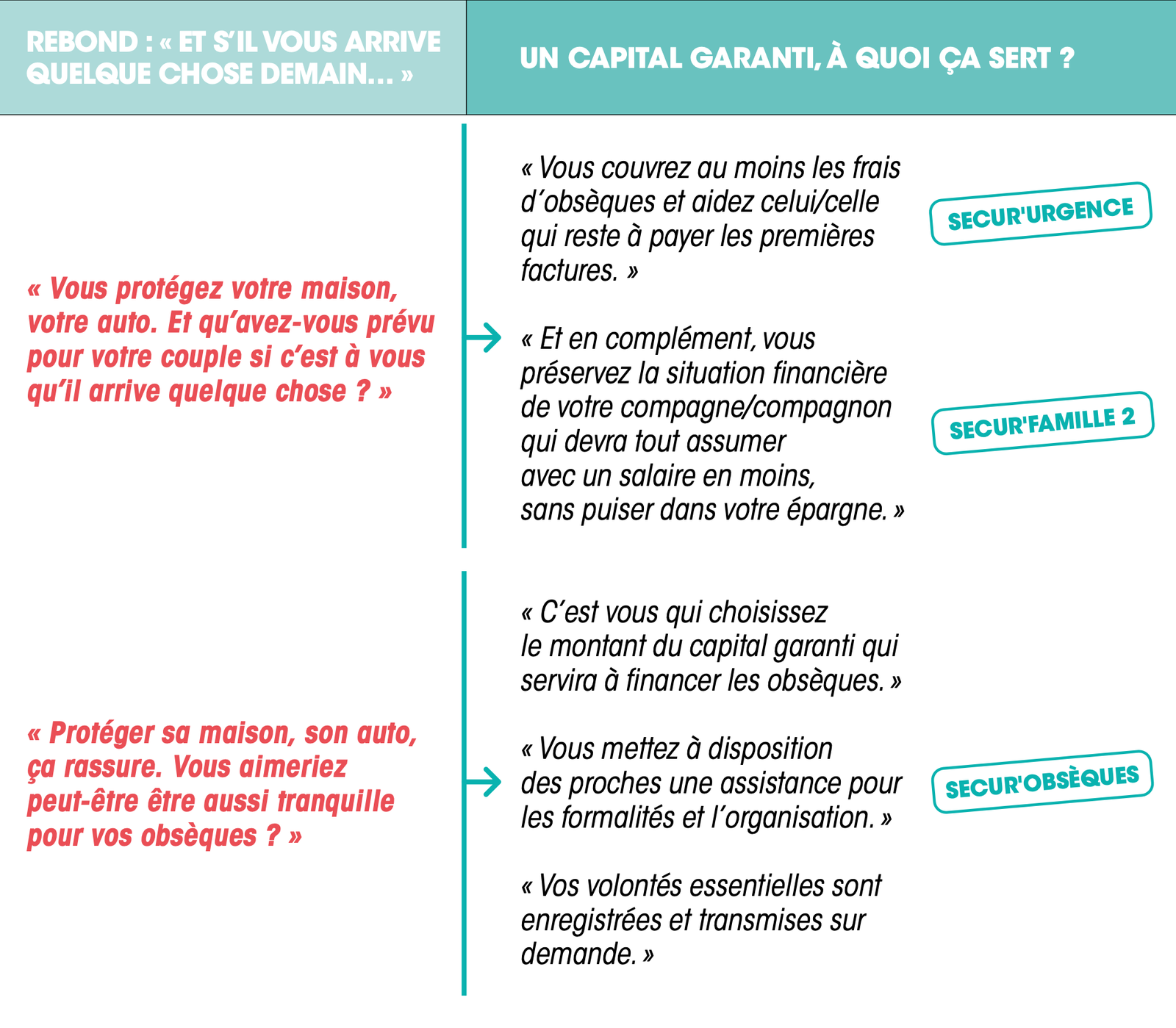 • SECUR’ Urgence, SECUR’ Obsèques, Assistance Vie : fiches clients.
