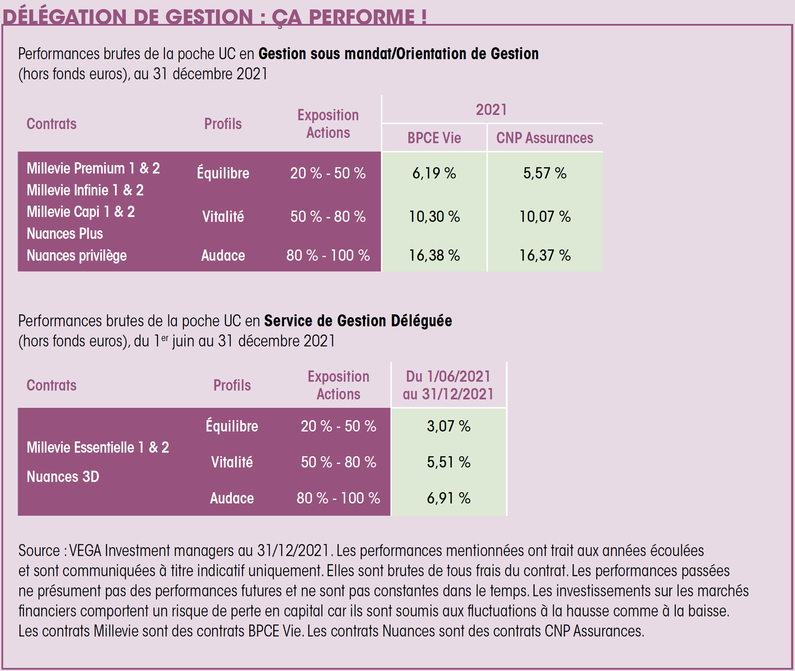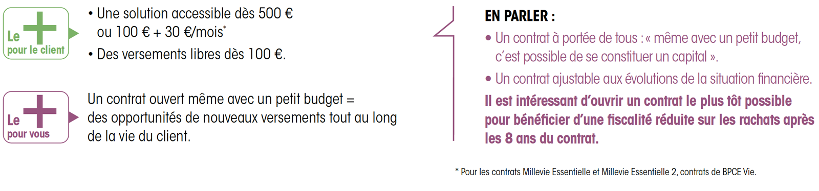 - pour les contrats Millevie 1 et 2 (conditions à venir)