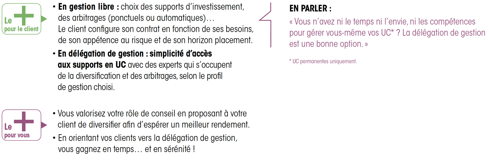 Par exemple : avec Stop-Loss, on limite le risque de perte par UC et avec l’Investissement Progressif, on lisse le risque dans le temps (idem abonnement).