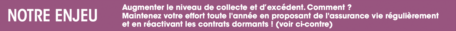Un contrat ouvert, mais qui dort, a peu de chances de répondre encore aux besoins et exigences du client et ne produit plus aucun effet sur la collecte. Pourtant, à la Caisse d’Epargne, sur plus de 5 millions de contrats d’assurance vie en stock, près de la moitié est inactive depuis plus de 4 ans ! C'est un vivier extraordinaire de clients à recontacter et à qui proposer une « révision technique » de leur contrat afin de l’adapter à leurs besoins actuels et leur permettre d’en exploiter tout le potentiel.