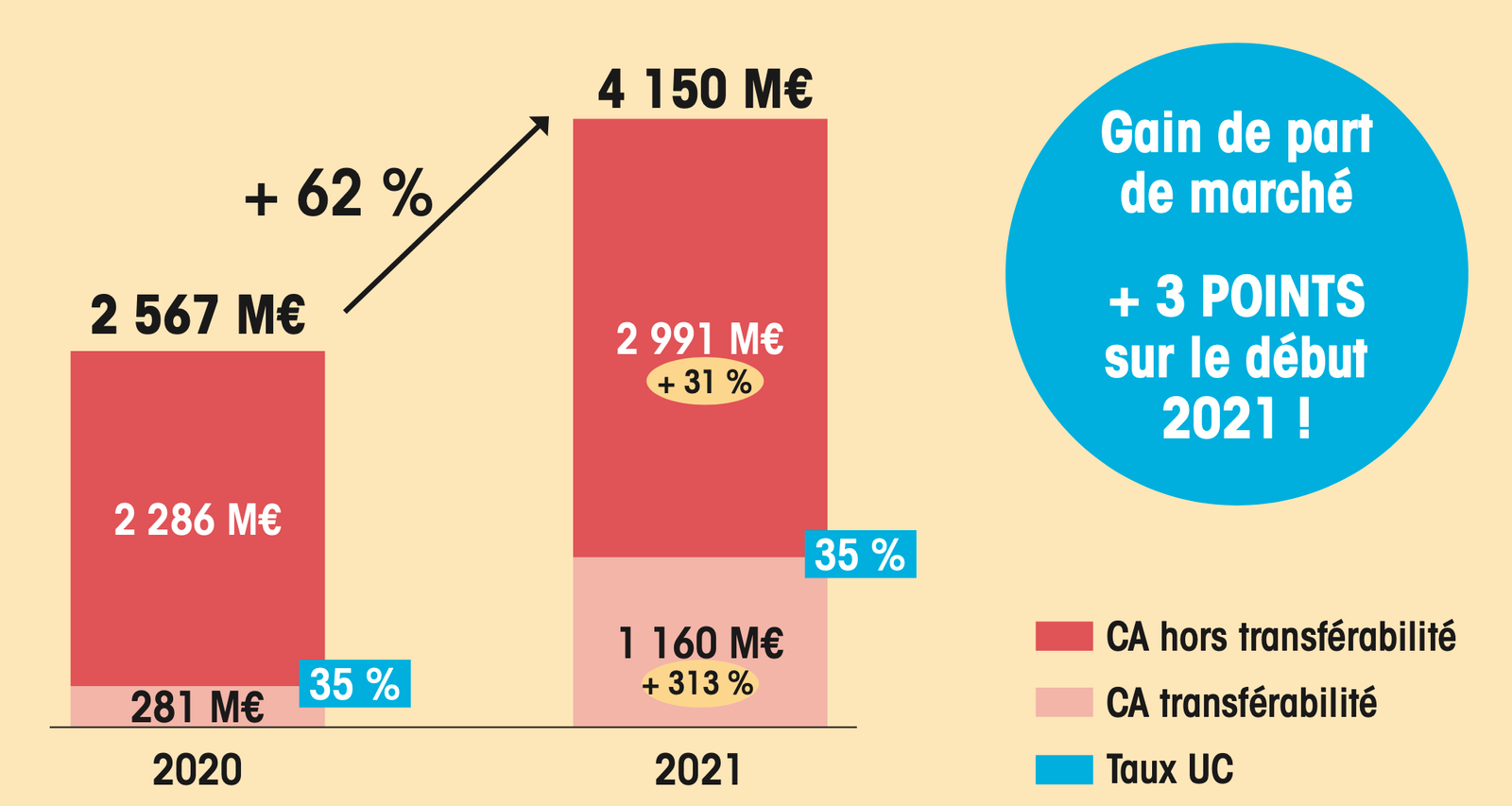 Les flux liés aux abonnements ont représenté 861 M€ en 2020. Si nous restons sur la dynamique actuelle de la collecte avec un taux d’abonnement moyen de 50 %, il est possible d’atteindre 1 Md€ de chiffre d'affaires issu de l'abonnement en 2021, soit près de 10 % de l'objectif 2021 !