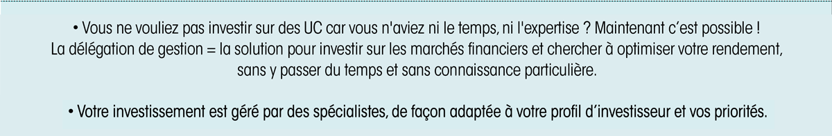 INVESTIR SUR DES SUPPORTS EN UNITÉS DE COMPTE PRÉSENTE UN RISQUE DE PERTE EN CAPITAL DÛ AUX FLUCTUATIONS DES MARCHÉS FINANCIERS. PARLEZ-EN À VOTRE CLIENT.