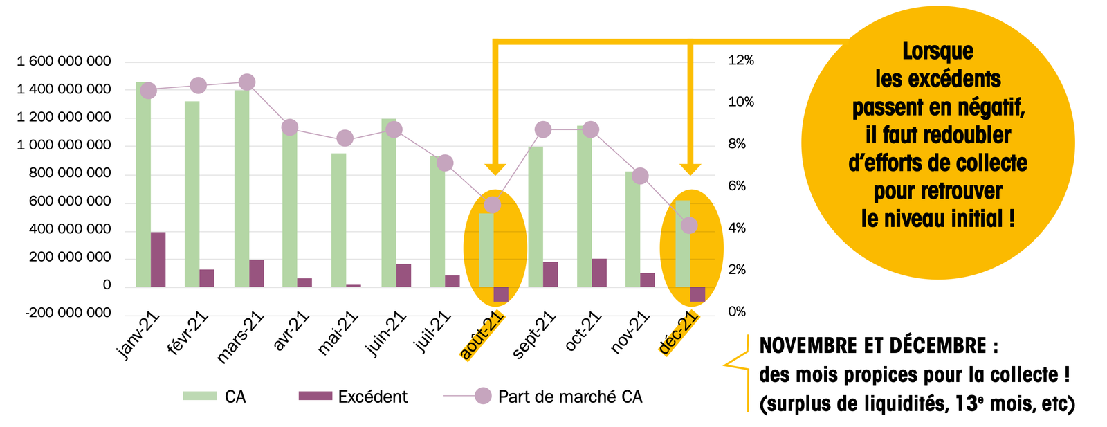 Les creux d'activité impactent fortement l'excédent et les parts de marché.